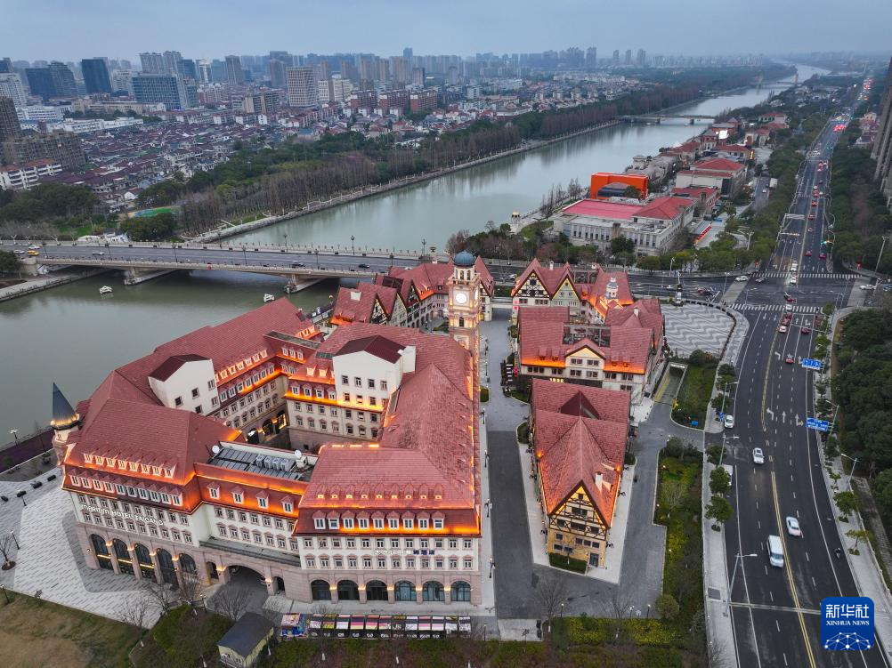 2026年2月24日拍摄的太仓罗腾堡风情街(无人机照片)。