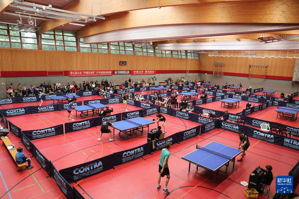 这是2024年9月27日在德国汉堡拍摄的第七届太仓“中德友谊杯”乒乓球国际邀请赛现场。