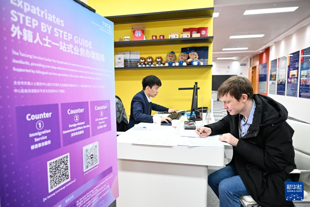 2026年2月25日,在太仓市外籍人士服务中心,一名德企员工在办理业务。