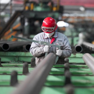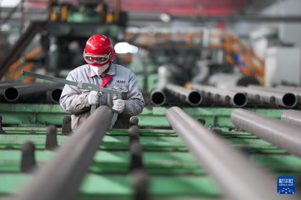 2月27日,黑龙江建龙钢铁有限公司轧钢厂钢管深加工车间工人在进行生产作业。