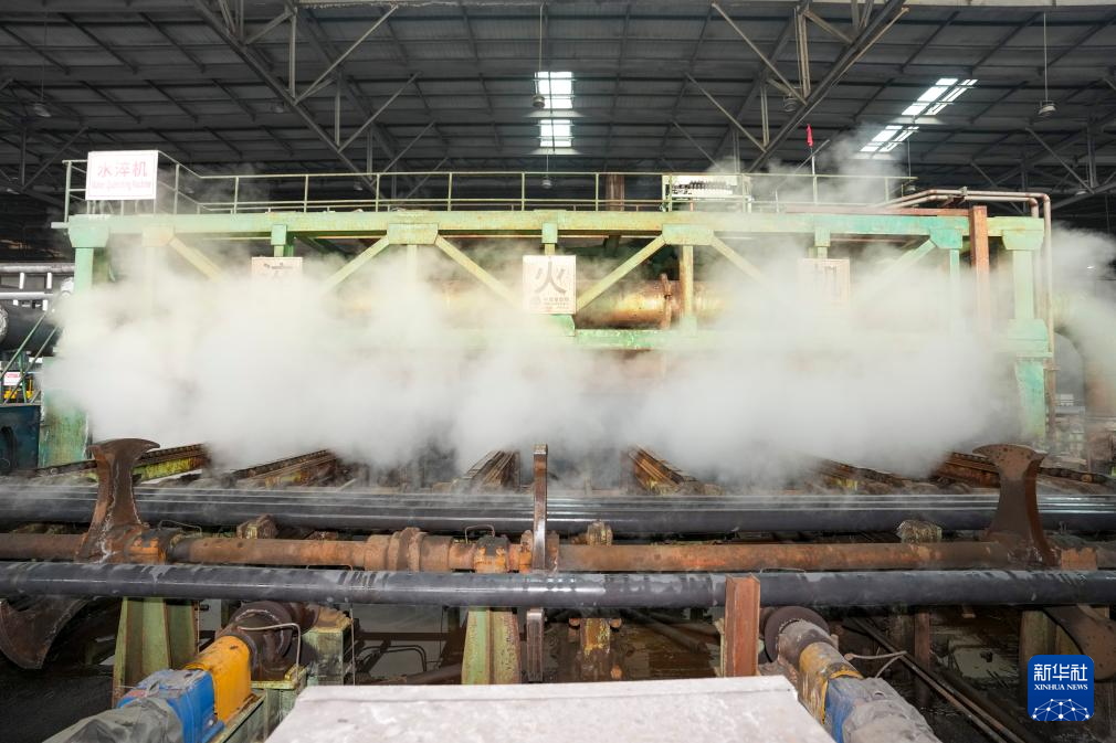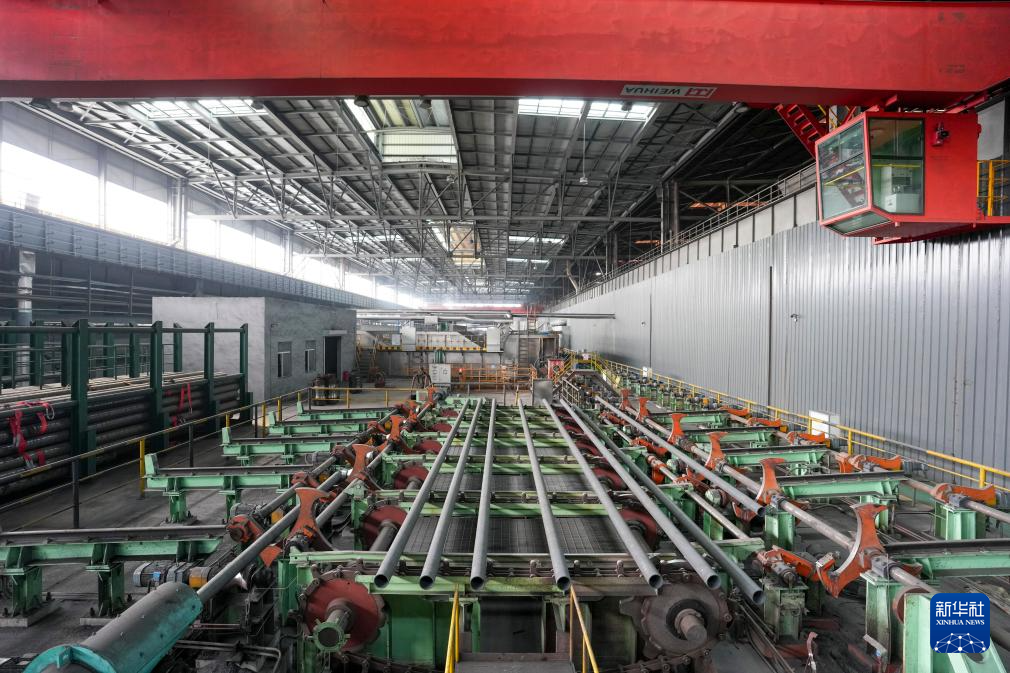 2月27日,黑龙江建龙钢铁有限公司轧钢厂钢管深加工车间自动化设备在生产作业。
