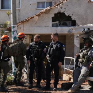 3月3日,在以色列北部尤瓦尔村,安全人员在一处遭受袭击波及的房屋附近开展工作。