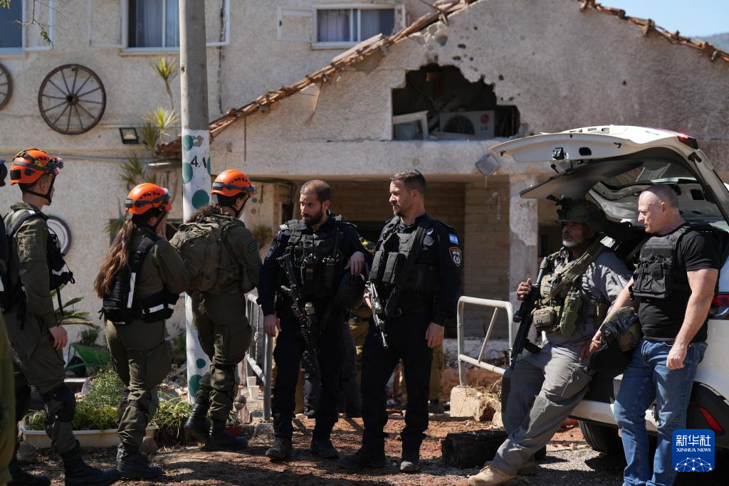 3月3日,在以色列北部尤瓦尔村,安全人员在一处遭受袭击波及的房屋开展工作。