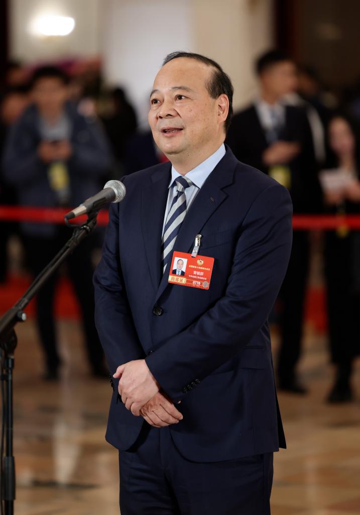 3月4日,全国政协十四届四次会议首场“委员通道”集体采访活动在北京人民大会堂举行。这是全国政协委员曾毓群接受媒体采访。