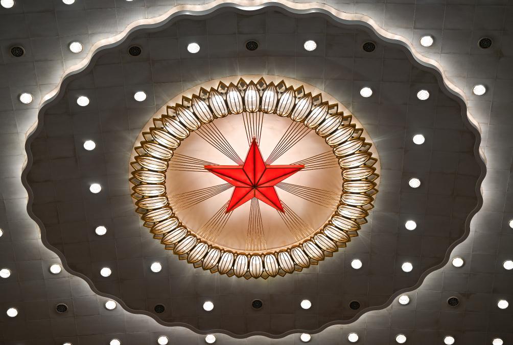 3月4日,全国政协十四届四次会议开幕会即将在北京人民大会堂举行。这是人民大会堂内景。