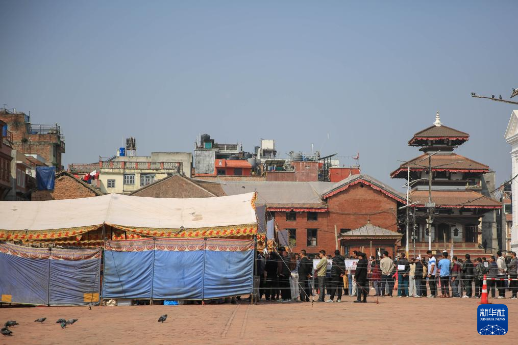 3月5日,在尼泊尔加德满都,选民在投票站排队投票。