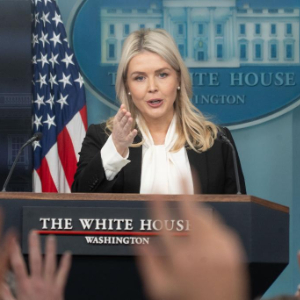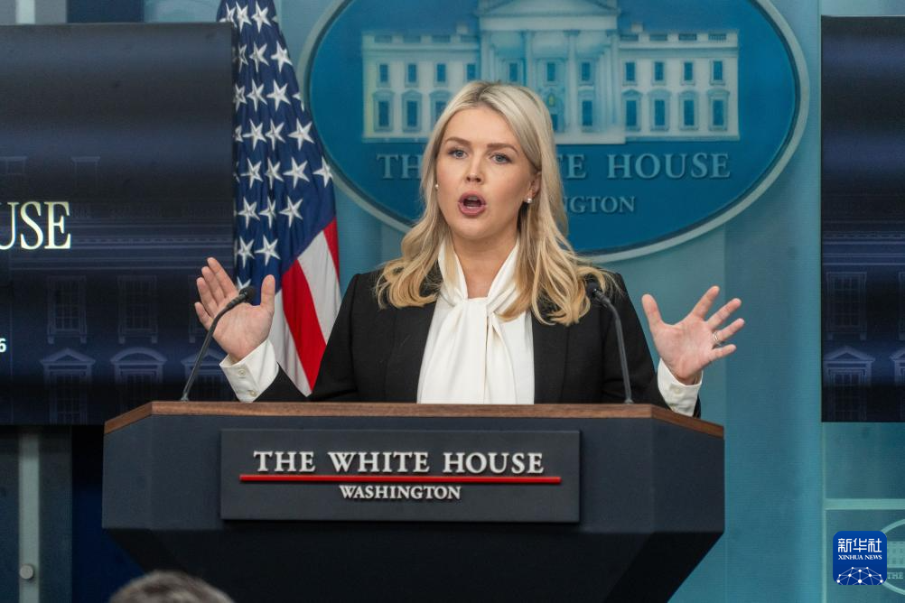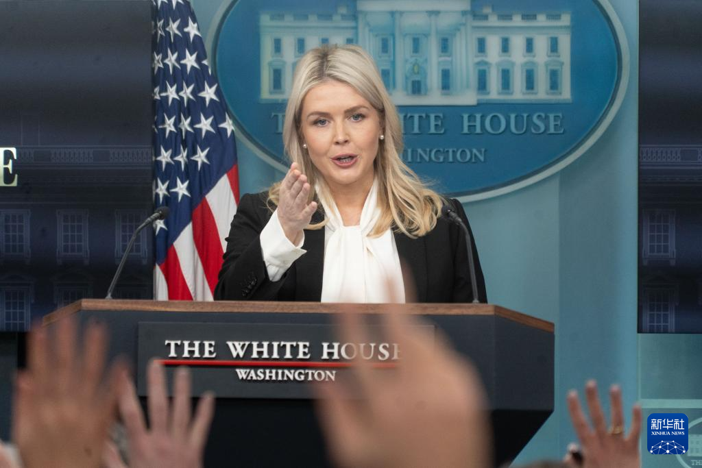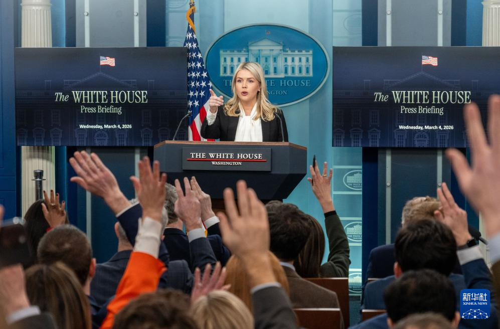 3月4日,在美国首都华盛顿,白宫新闻秘书莱维特出席记者会。