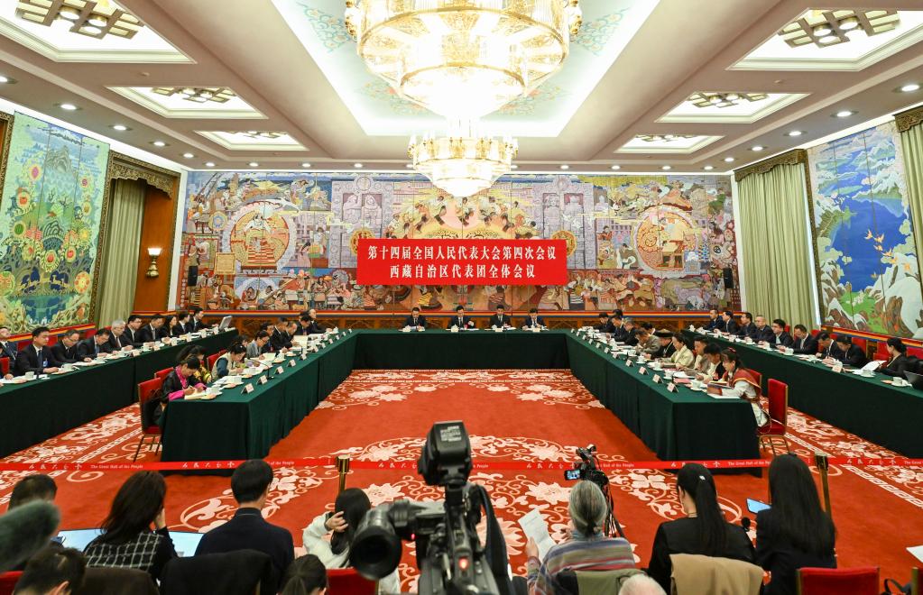 3月6日,十四届全国人大四次会议西藏代表团举行开放团组会议。