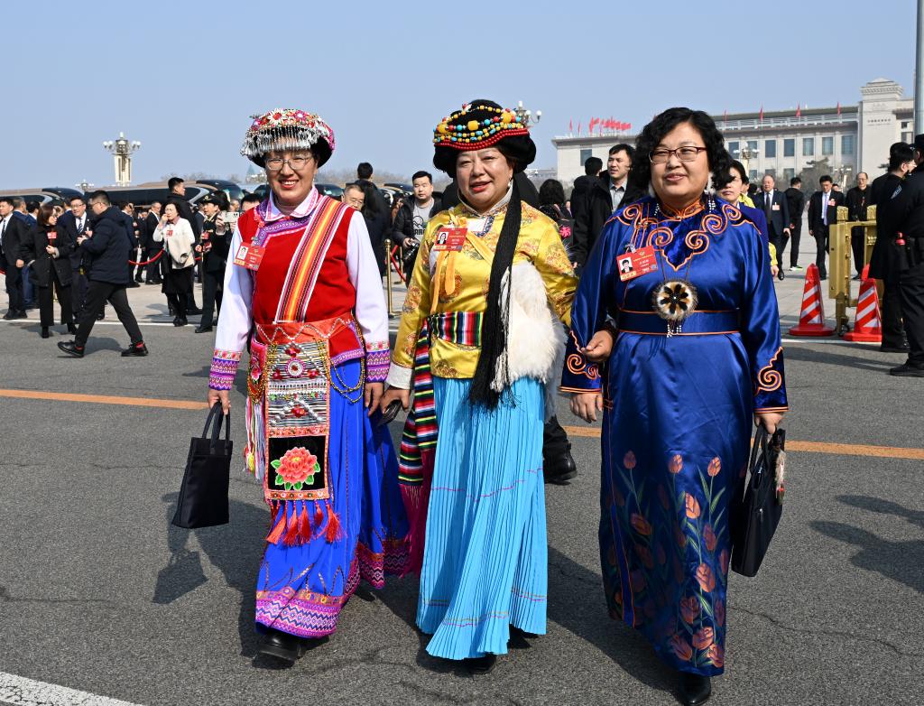 3月8日,全国政协十四届四次会议在北京人民大会堂举行第三次全体会议。这是全国政协委员走向会场。