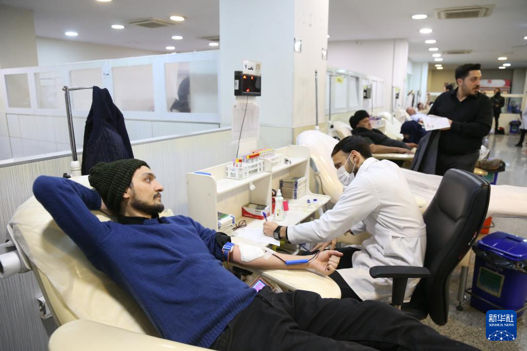3月7日,民众在伊朗首都德黑兰一处血液中心献血。