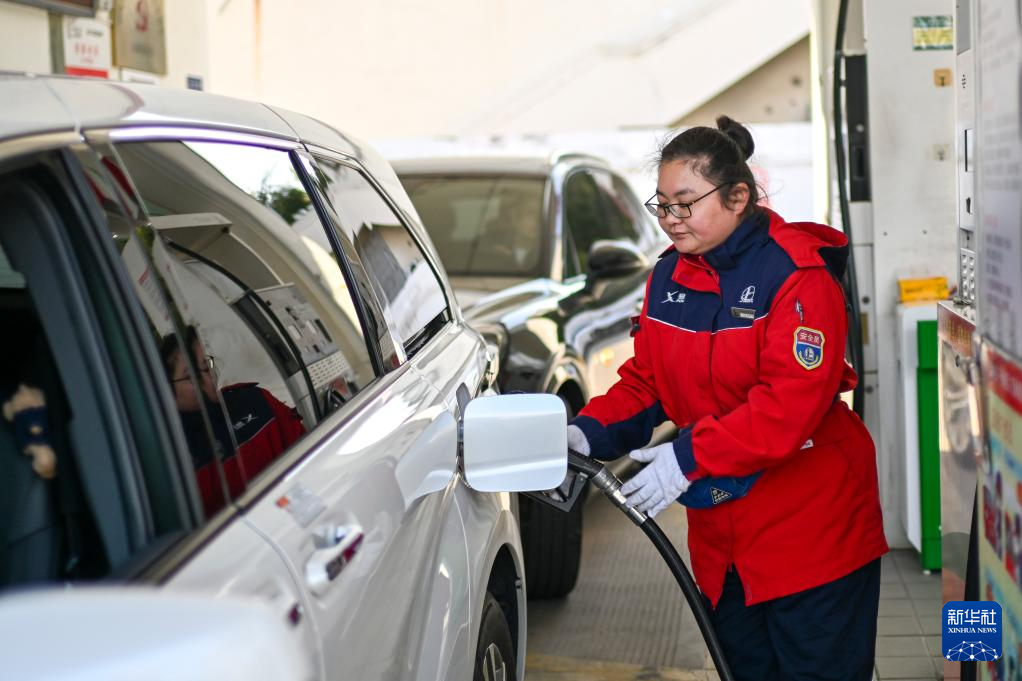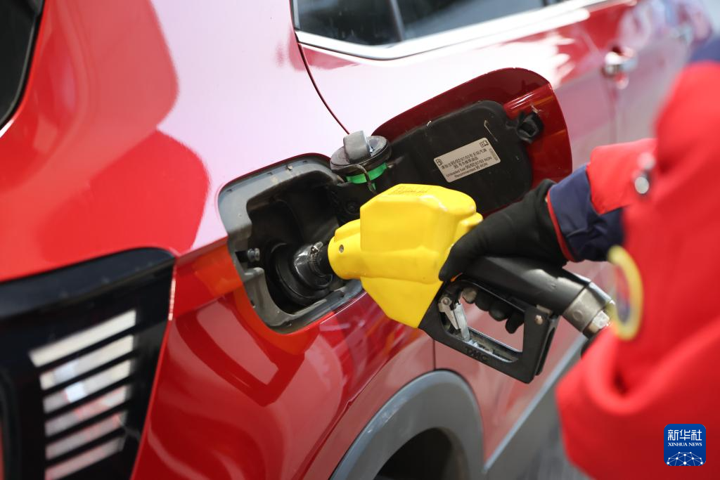 3月9日,工作人员在江苏省昆山市一加油站给汽车加油。
