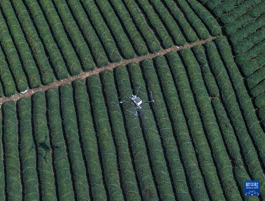 3月10日,农用无人机在武义熟水茶业有限公司的茶园内施肥(无人机照片)。
