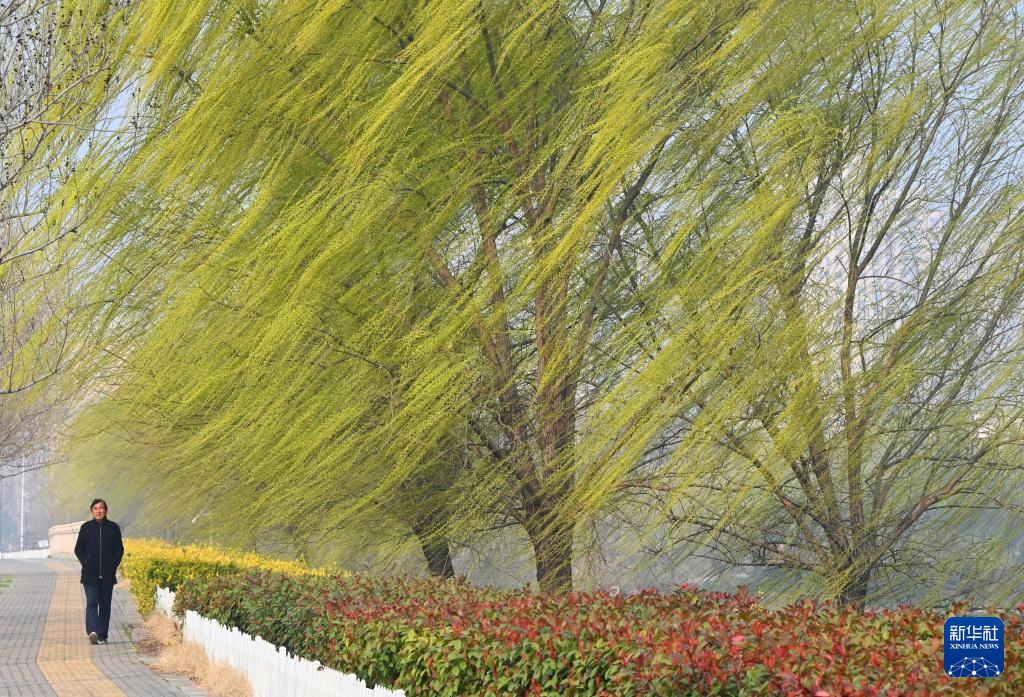 3月12日,市民从河南省开封市黑岗口调蓄水库旁边走过。