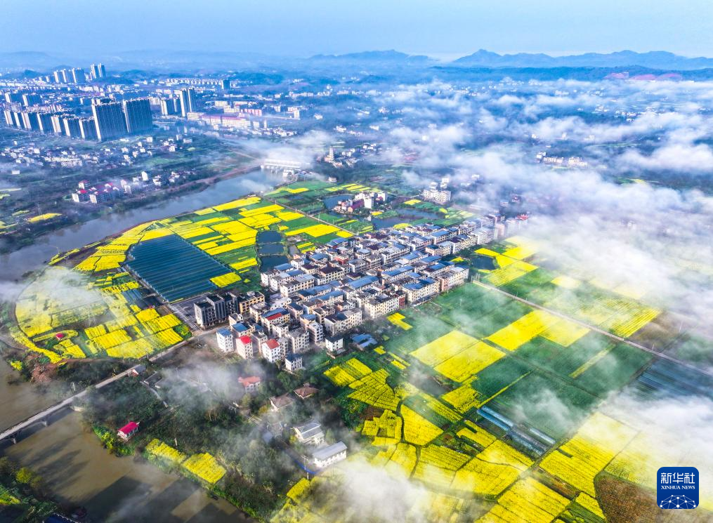 3月11日拍摄的湖南省常宁市宜阳街道春日景色(无人机照片)。