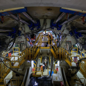 3月12日,中铁十一局技术人员检查“深莞七号(鲲鹏号)”盾构机的螺旋机。