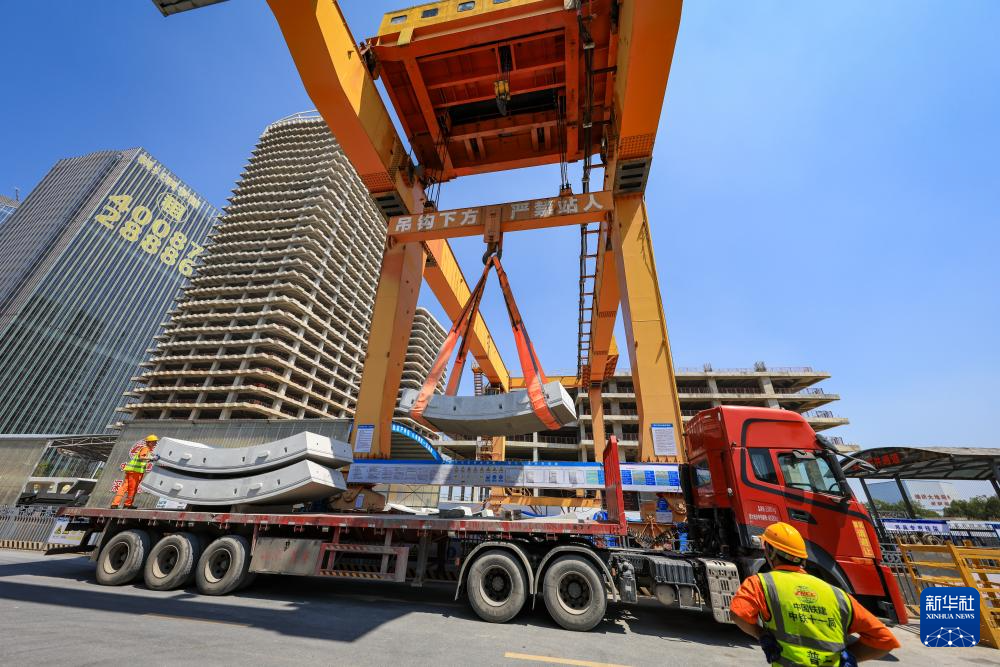3月12日,中铁十一局施工人员在隧道内进行管片吊运作业。