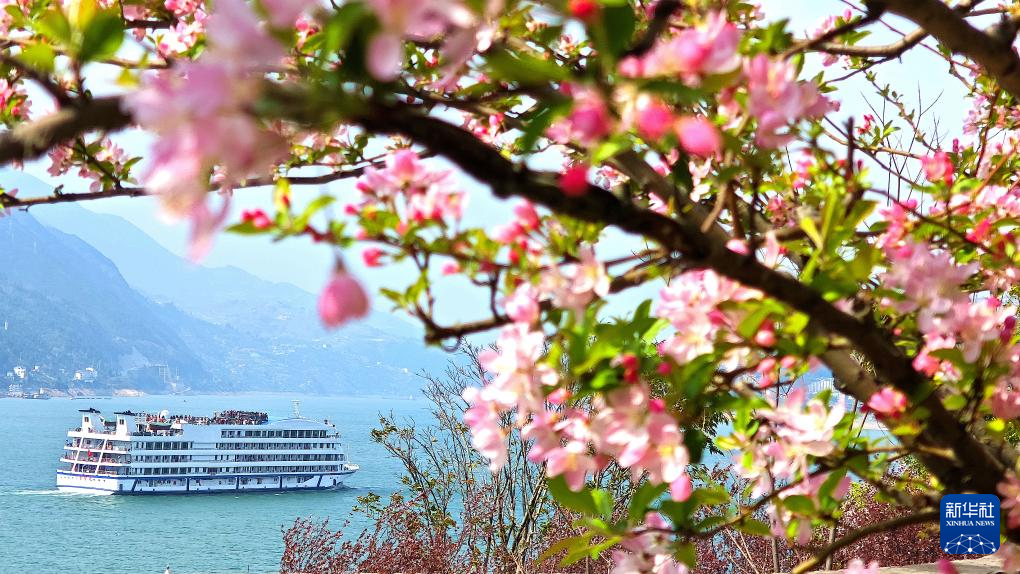 3月13日,重庆市巫山县境内长江三峡巫峡两岸桃花、海棠花盛开。