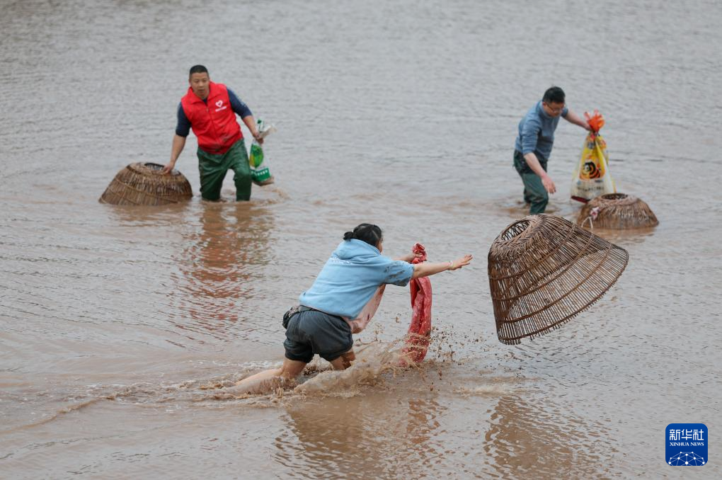 3月14日,当地村民和游客参加摸鱼体验活动。