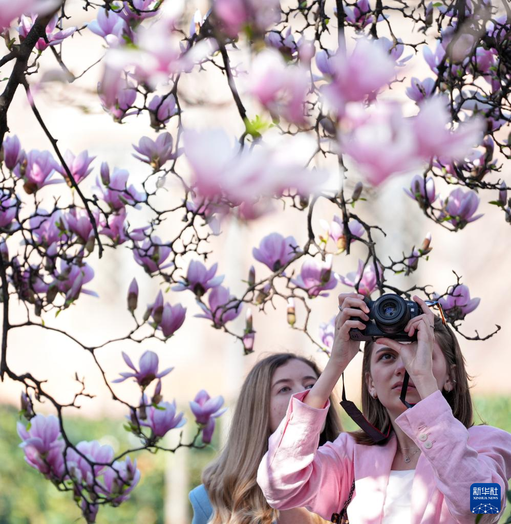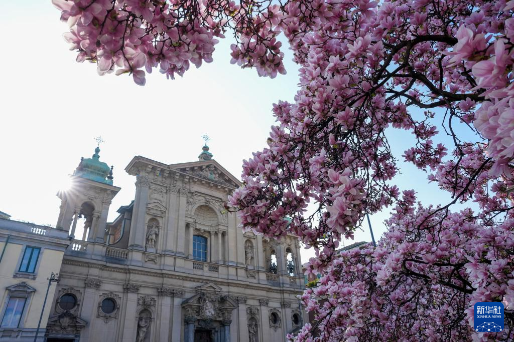 眼下正值意大利米兰玉兰花花期,人们趁着晴好天气出门踏青,赏花休闲。