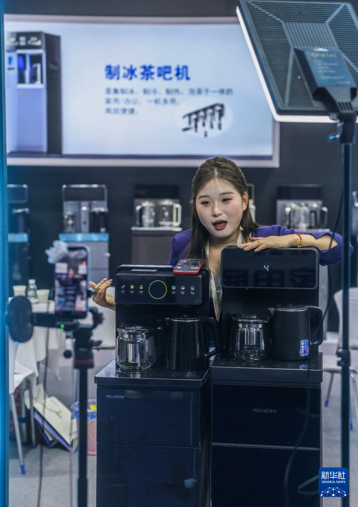 3月16日,工作人员在展示家用咖啡机和制冰机。