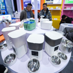 3月16日在博览会上拍摄的宠物智能家电展区。
