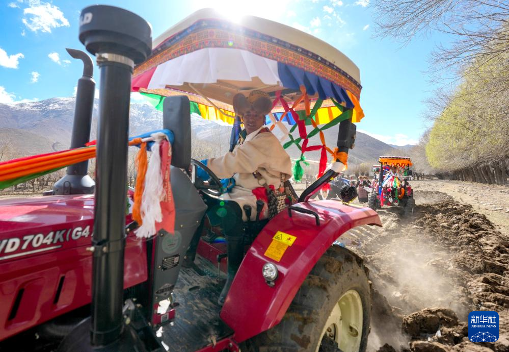 3月16日,西藏山南市结巴乡结巴村村民身着盛装,举行春耕仪式。