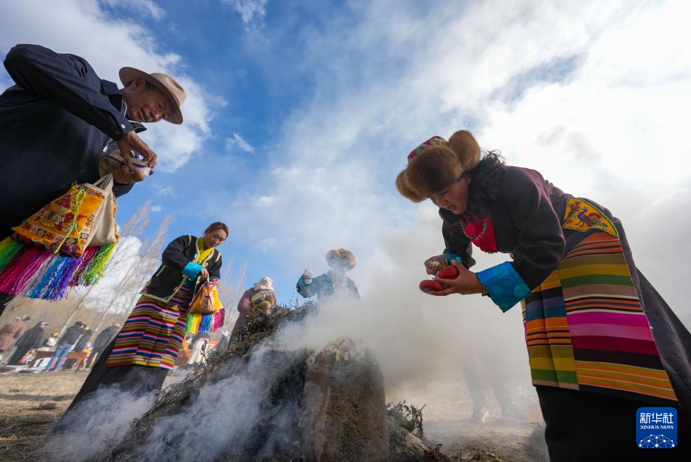 3月16日,西藏山南市结巴乡结巴村村民举行春耕仪式。