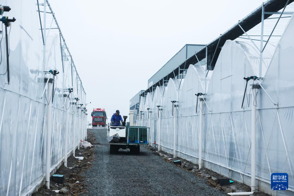 3月17日,慈溪市腾丰省级现代化农事服务中心的工作人员把出芽的育秧盘运送到育秧大棚内。