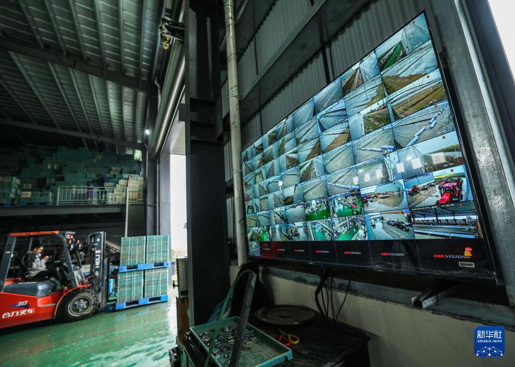 慈溪市腾丰省级现代化农事服务中心育秧中心数字大屏实时监控早稻秧苗的生长情况(3月17日摄)。