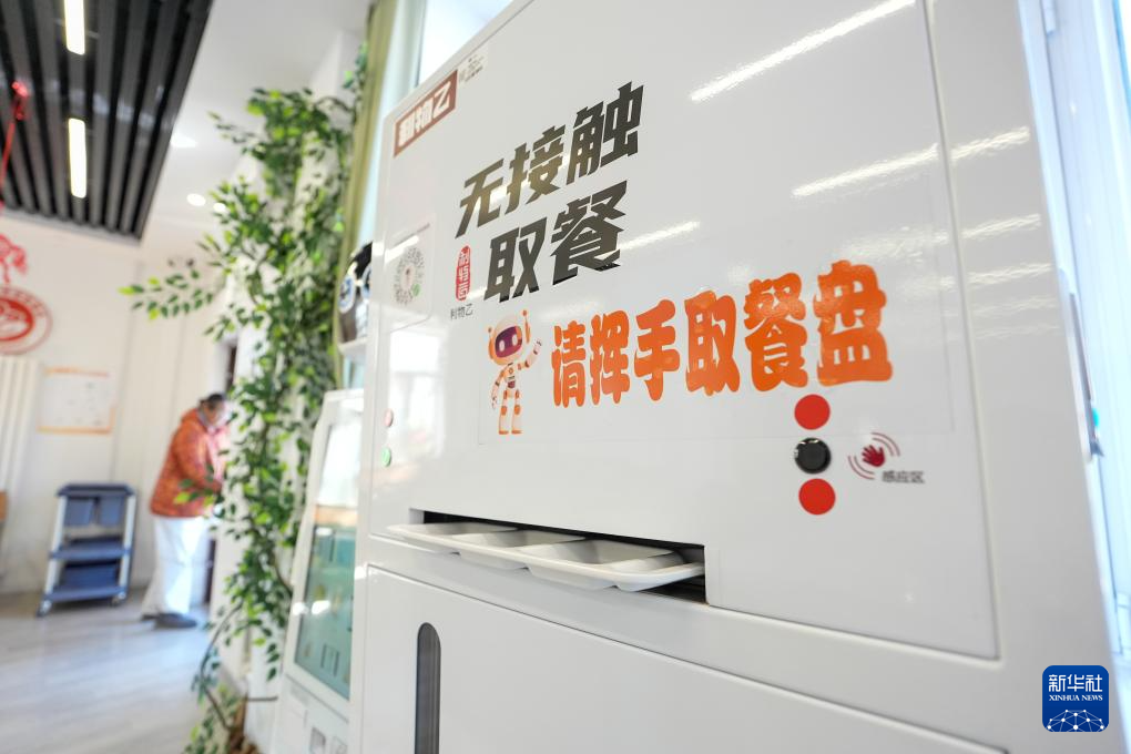 北京荣华街道智慧康养机器人养老驿站内的智能分餐盘机(3月18日摄)。