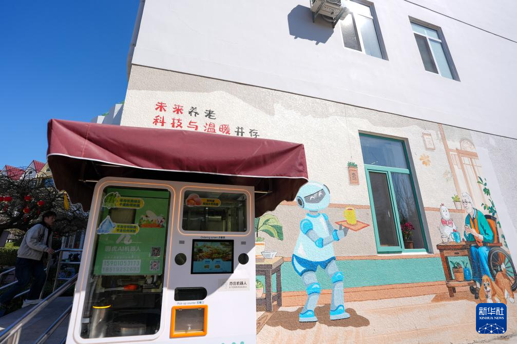 北京荣华街道智慧康养机器人养老驿站外摆放着可以外卖煎饼的“圆虎煎饼机器人”(3月18日摄)。