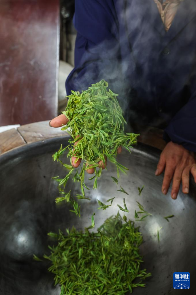 3月19日,梅家坞村的茶农周菊英手工炒制首批西湖龙井“明前茶”。