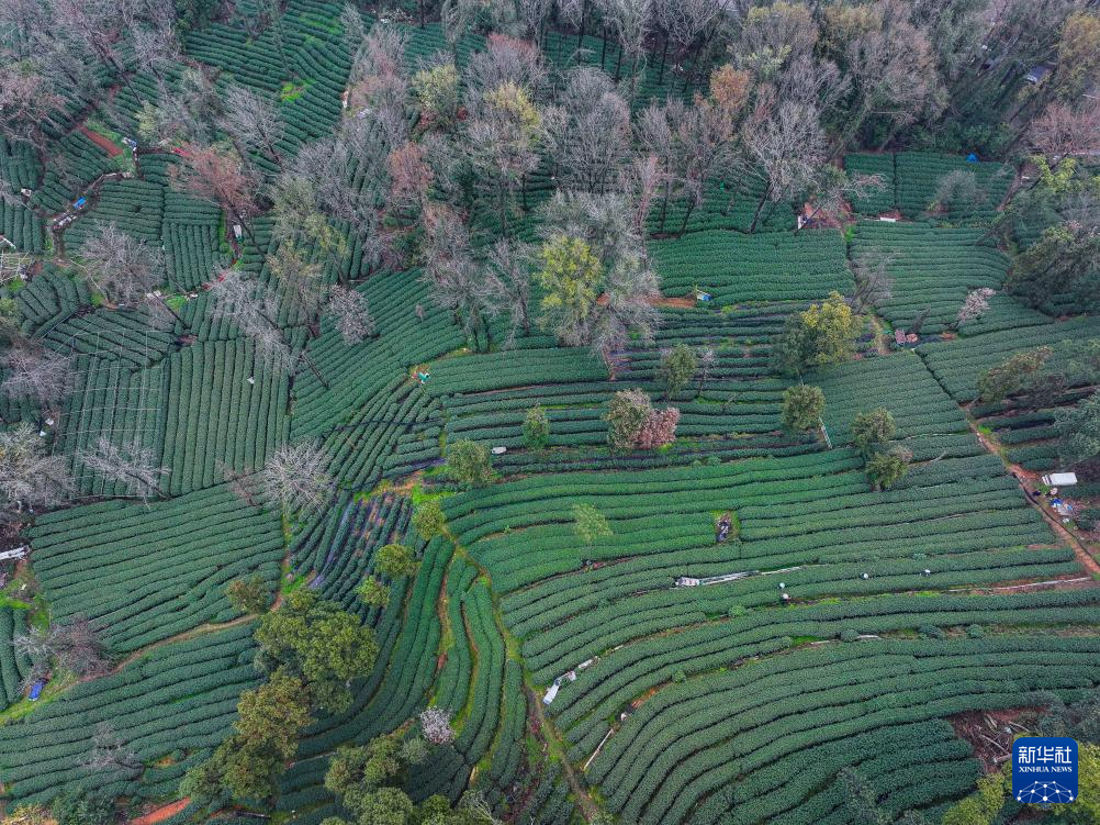 这是杭州西湖龙井茶一级保护区梅家坞村茶山上的龙井茶树(3月19日摄)。