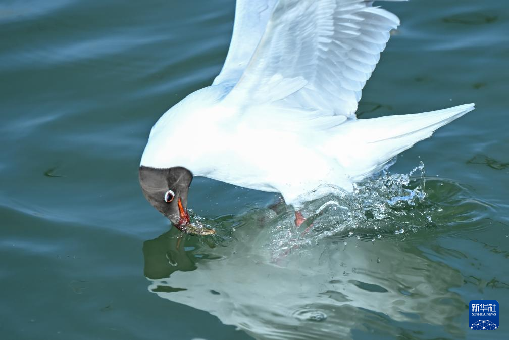 近日,随着天气转暖,大批红嘴鸥来到内蒙古乌海市乌海湖觅食嬉戏,与沙漠、湖泊、城市构成了独特的春日景观,吸引众多游人到湖边打卡观景。