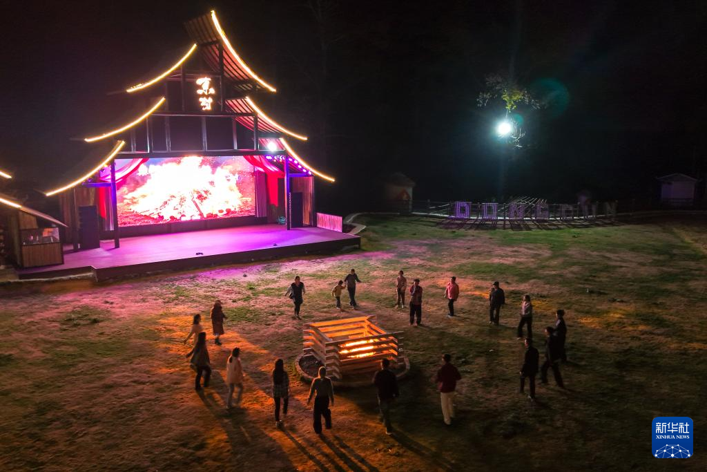 3月26日,人们在东村社区参加篝火晚会(无人机照片)。