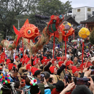 3月28日,在贵州省榕江县三宝侗寨,侗族群众舞稻草龙欢庆“萨玛节”。