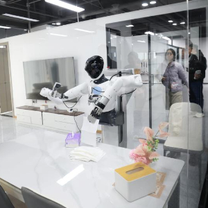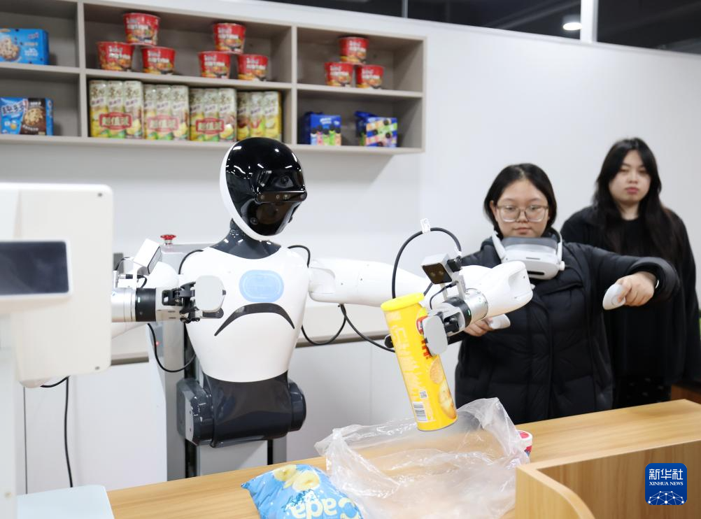 在人形机器人数据训练中心,机器人在工业智造、智慧家庭、商业服务等场景进行数据采集,为人形机器人相关研发提供数据支持。数据采集员在此操控机器人完成一系列特定任务,生成海量动作数据,让机器人“大脑”更智慧。未来,这些机器人将会进入工厂、商超、家庭等更多应用场景。