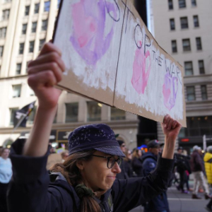 3月28日,人们在美国纽约参加“不要国王”抗议活动。