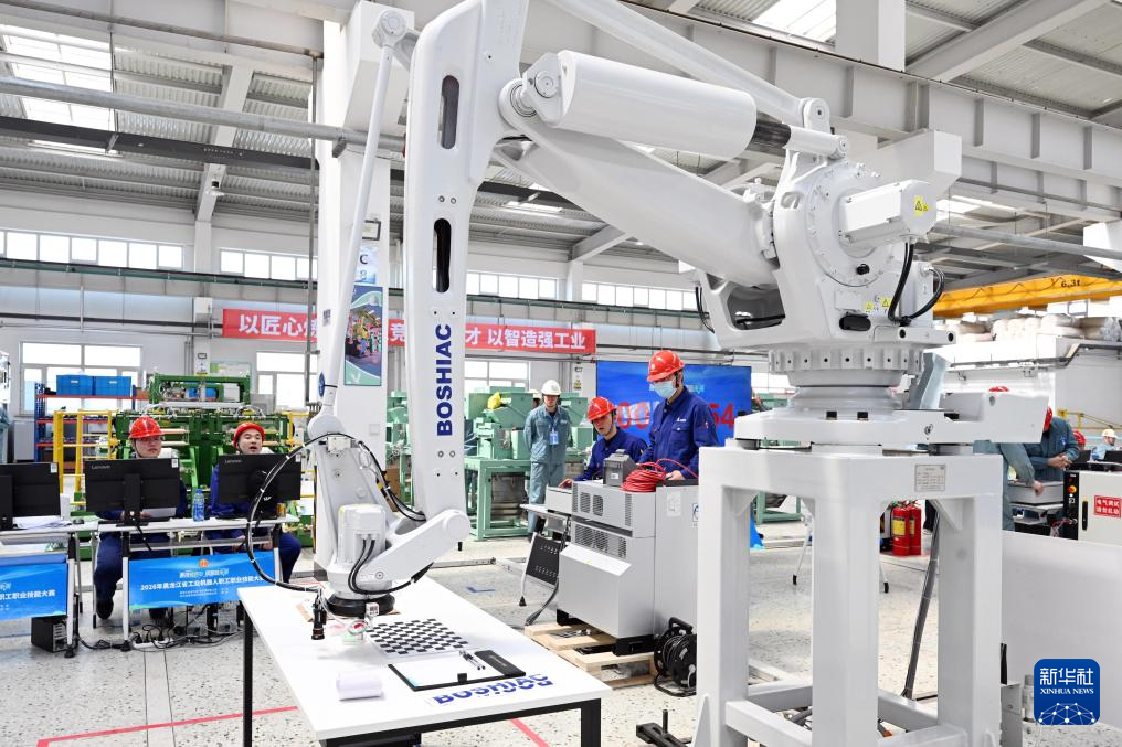 4月1日,2026年黑龙江省工业机器人职工职业技能大赛在哈尔滨举行,比赛设置工业机器人视觉协同编程调试等四个专业赛项,采取理论考试与实操相结合的方式,来自全省各企业一线的技术骨干参加比赛。本次比赛旨在推动全省智能制造领域技能人才队伍建设,助力县域经济和工业高质量发展。
