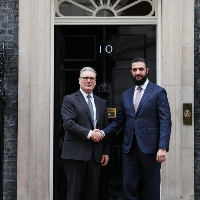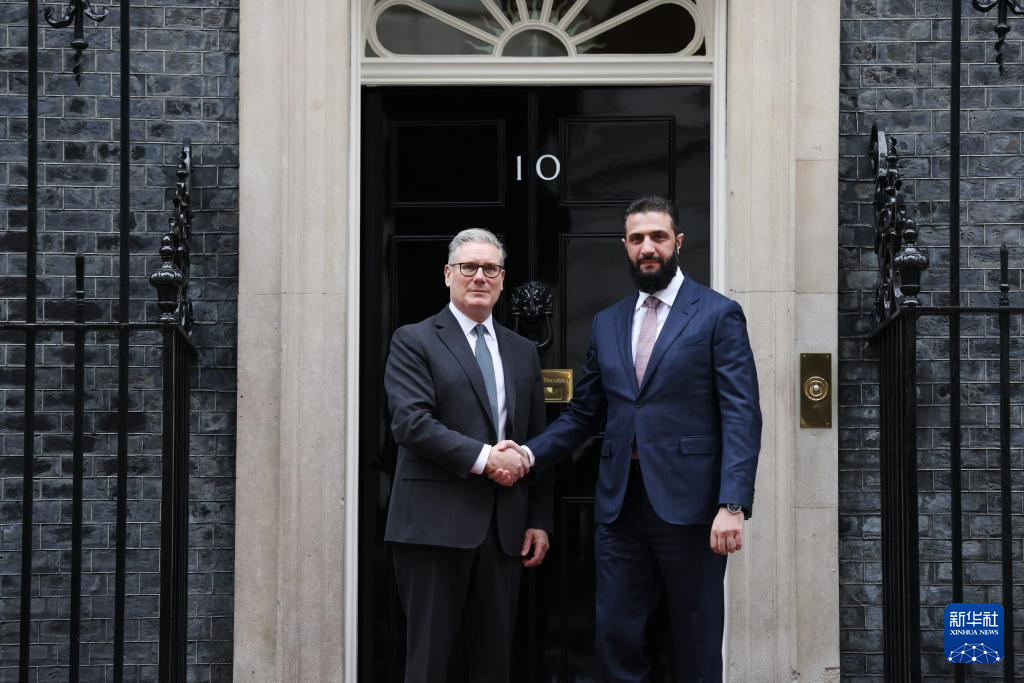 3月31日,在英国伦敦唐宁街10号首相府前,英国首相斯塔默(左)与到访的叙利亚过渡政府总统艾哈迈德·沙拉握手。