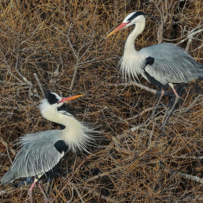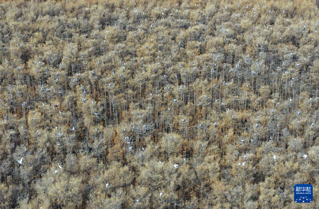 这是4月1日在黑龙江省同江市拍摄的苍鹭群(无人机照片)。