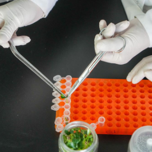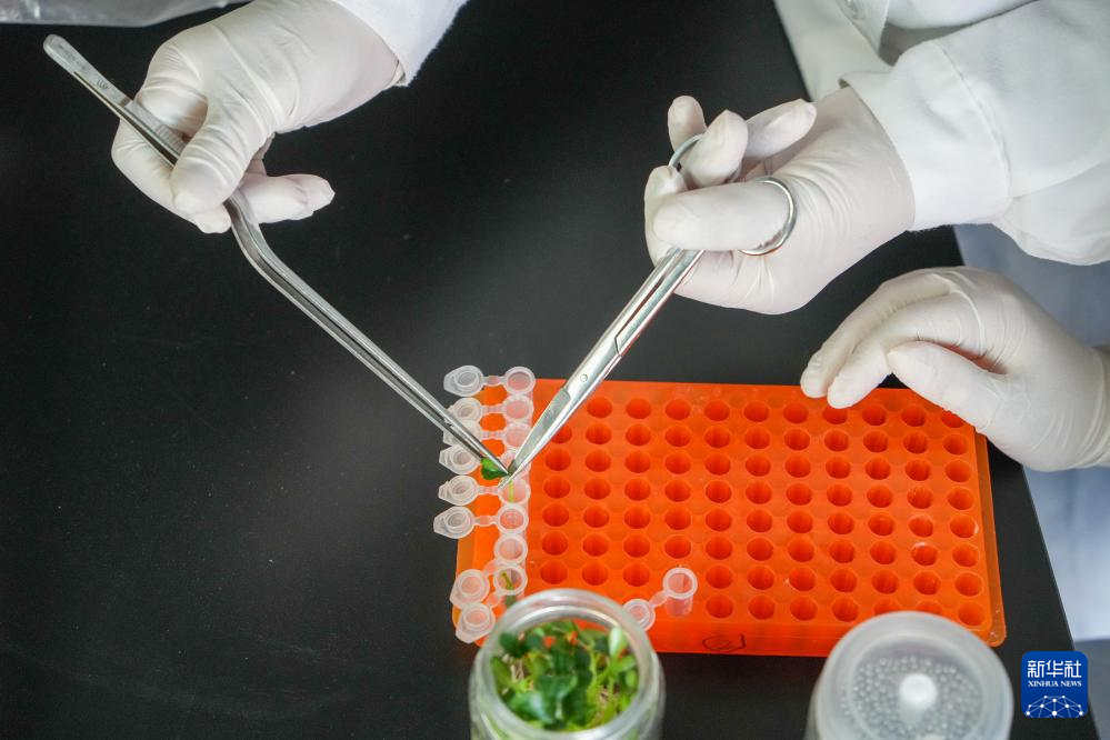 4月1日,寿光蔬菜种质资源库的工作人员在组织培养室工作。