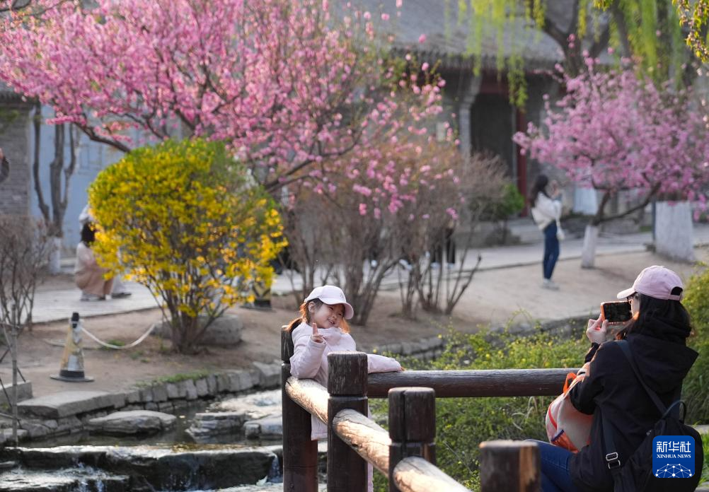 3月31日,游客在北京三里河公园拍照。