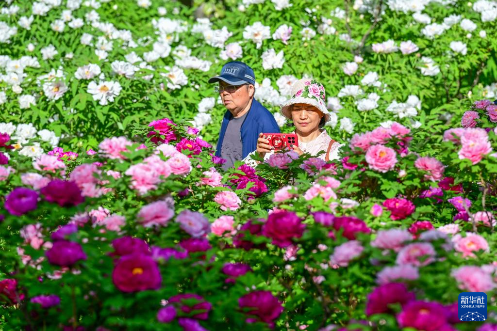 4月4日,游客在河北省石家庄市植物园赏花游玩。