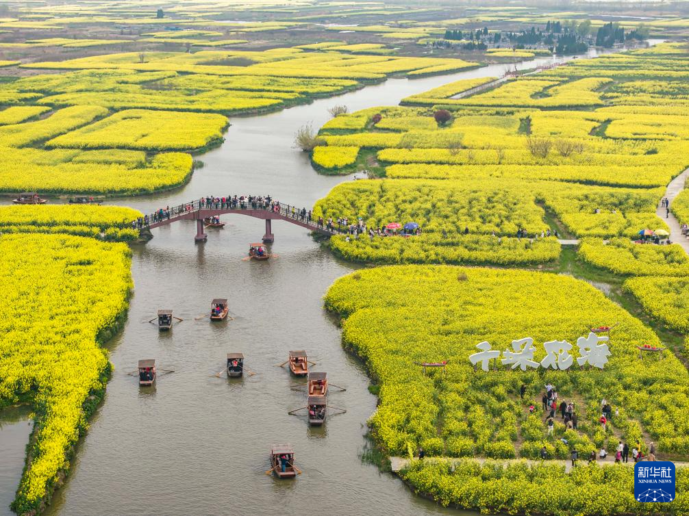 4月4日,游客在江苏兴化千垛景区踏青赏花(无人机照片)。