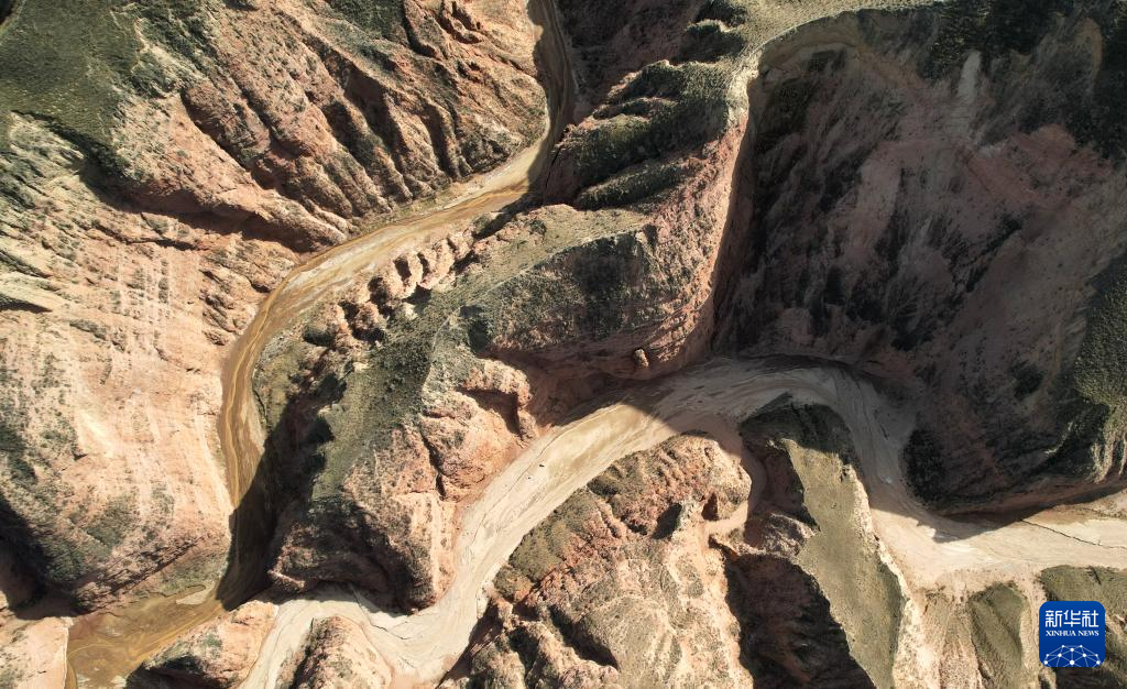 这是4月4日拍摄的石拉泉大峡谷丹霞地貌(无人机照片)。