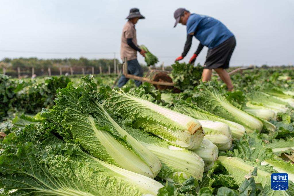4月5日,农民在云南省红河哈尼族彝族自治州建水县临安镇的一处农田采收大白菜。