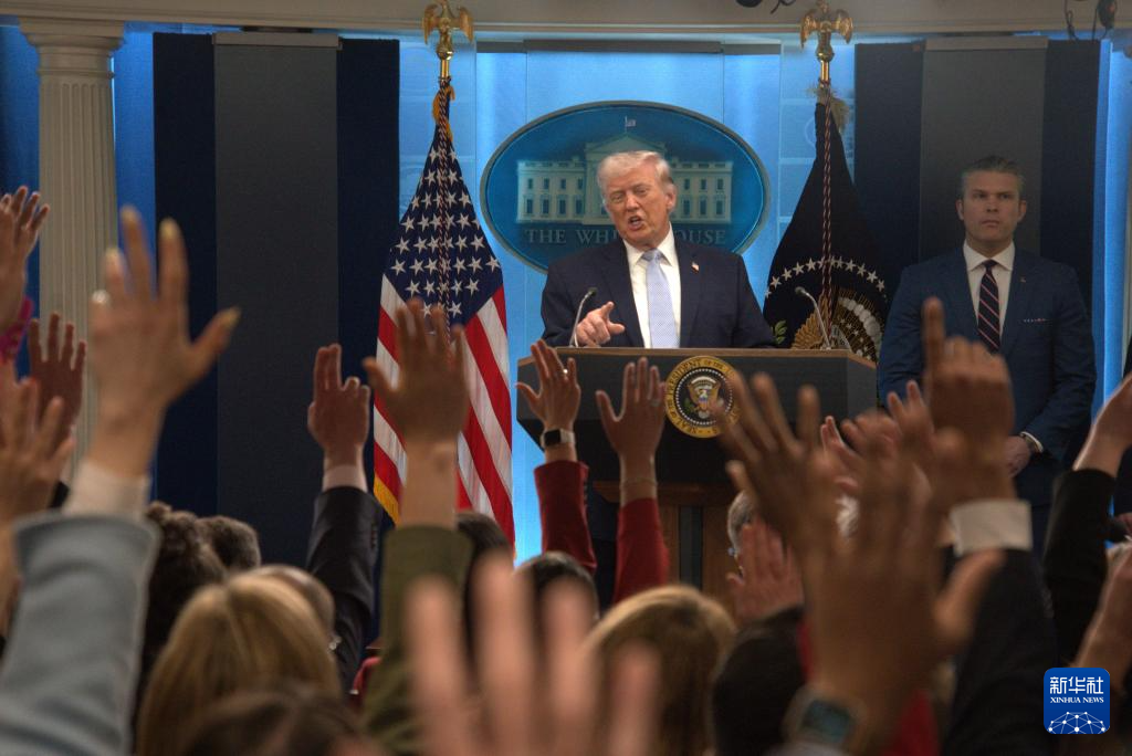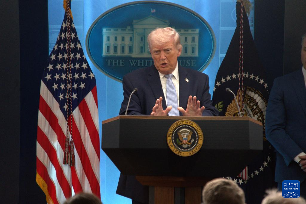 4月6日,美国总统特朗普在首都华盛顿白宫举行的新闻发布会上讲话。