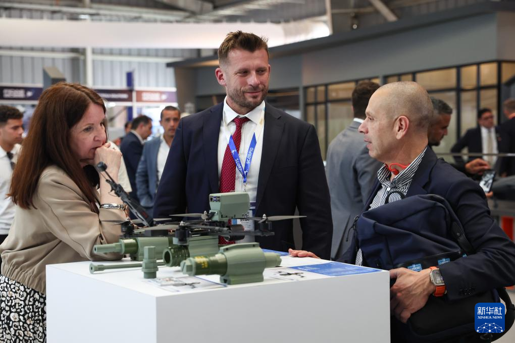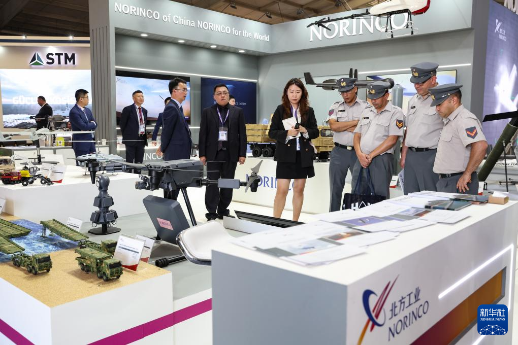 4月7日,在智利圣地亚哥首都大区普达韦尔举行的2026年国际航空航天展上,人们在中国北方工业有限公司展台参观。