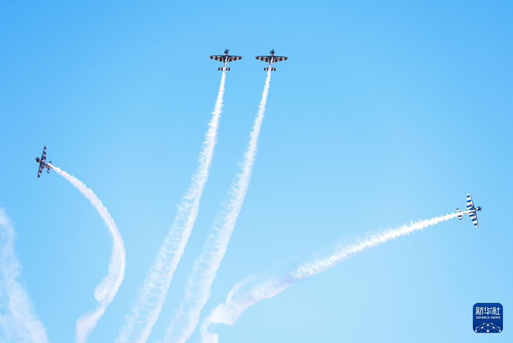 这是4月7日在智利圣地亚哥首都大区普达韦尔举行的2026年国际航空航天展上拍摄的飞行表演。
